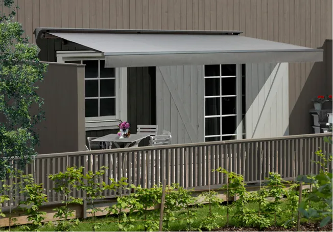 Markisen går att manövrera på flera olika sätt. Motordriven terrassmarkis är ett självklart val idag och därmed även standard. Styr den med fjärrkontroll eller smartphone, alternativt komplettera med helautomatik som sol- och vindvakt. Klassisk vev finns även som val.
