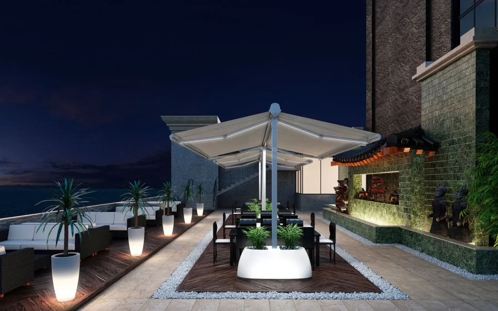 Markisen går att manövrera på flera olika sätt. Motordriven duomarkis är ett självklart val idag och därmed även standard. Styr den med fjärrkontroll eller smartphone, alternativt komplettera med helautomatik som sol- och vindvakt.
