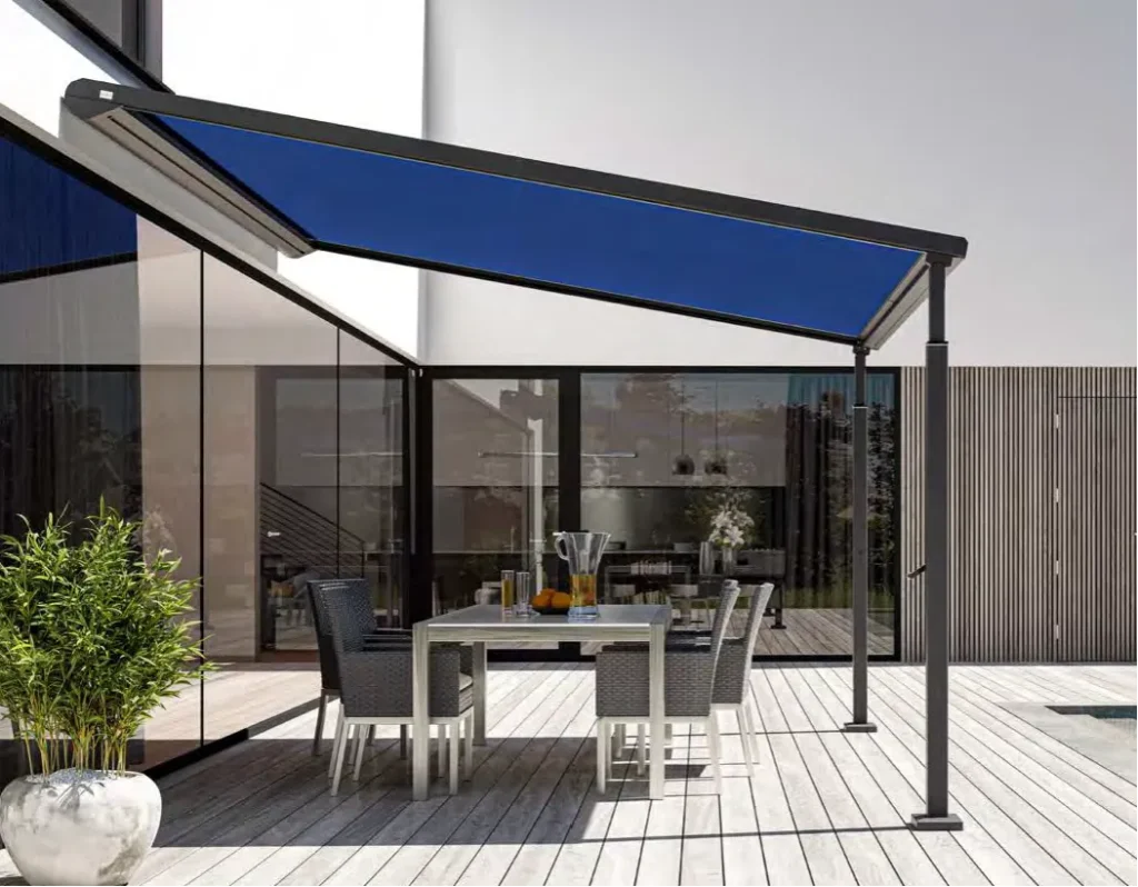 Markisen går att manövrera på flera olika sätt. Som motordriven pergola är ett självklart val idag och därmed även standard. Styr den med fjärrkontroll eller smartphone, alternativt komplettera med helautomatik som sol- och vindvakt.
